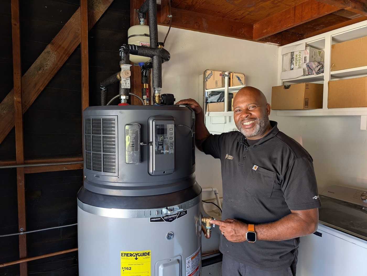 Get a shiny, new heat pump water heater like this ultra-efficient GE for a truly affordable price.